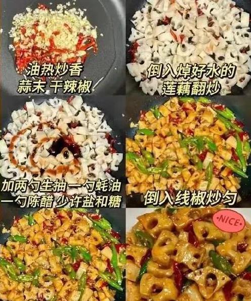 酸辣藕丁是一款特别开胃的小炒,藕丁脆爽,酸醋与辣椒的组合堪称点睛之笔。炒制时讲究火候快、不能拖沓,保证藕丁保持脆嫩的口感。经典又开胃,绝对是人见人赞的带饭佳品。